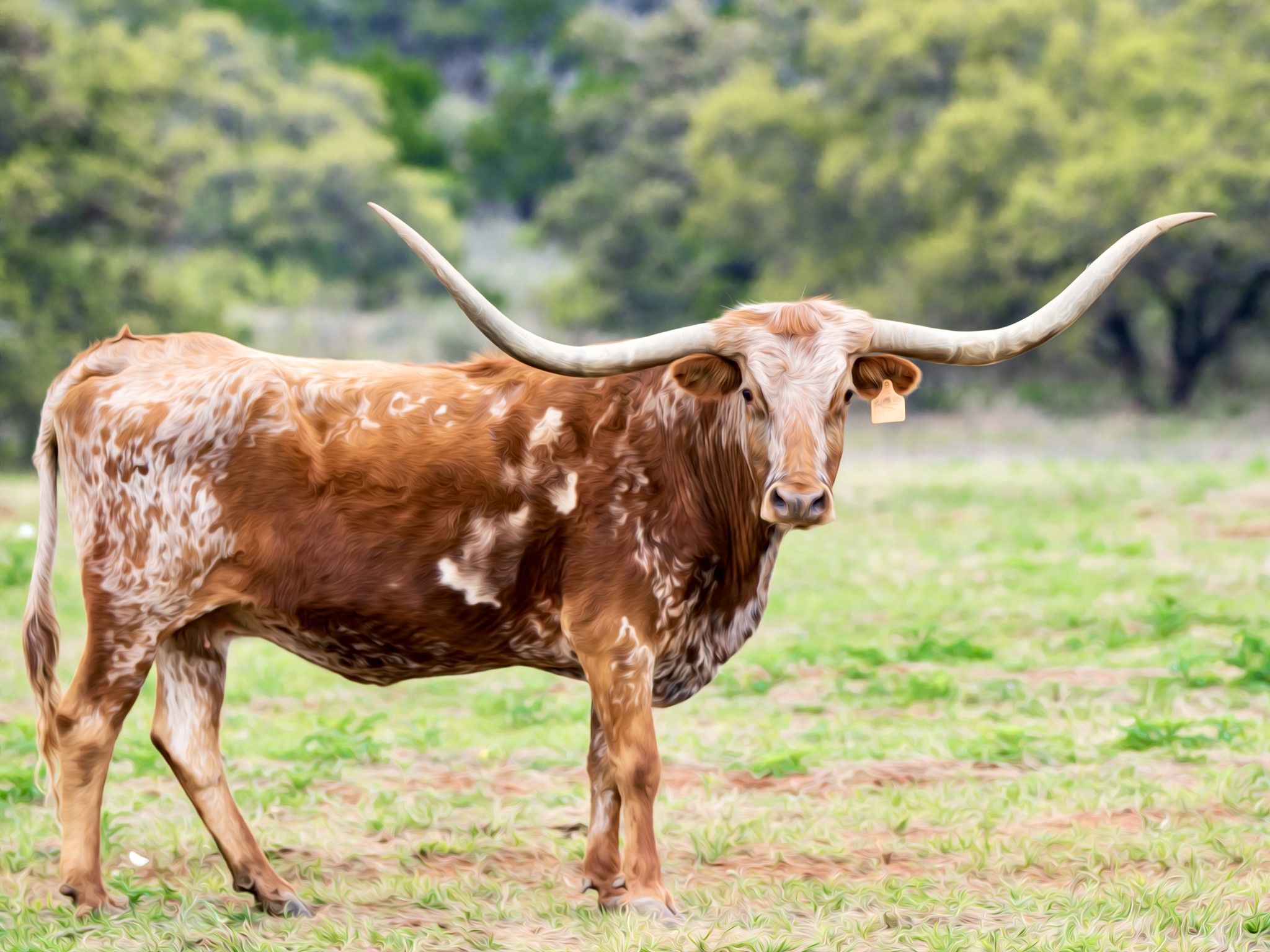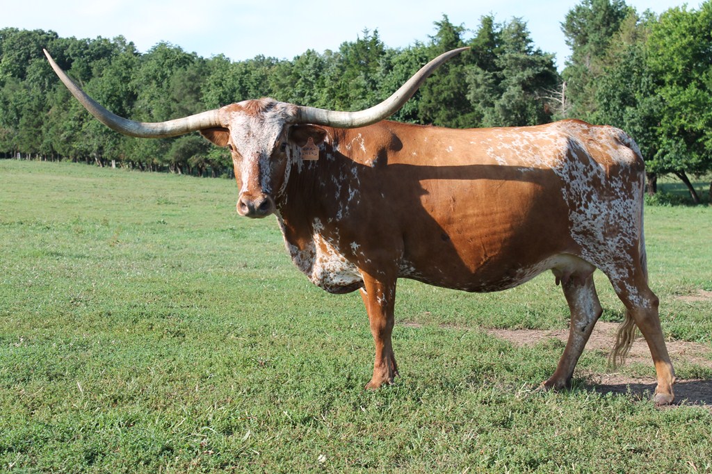 CC Cha-Ching won SENIOR PRODUCE OF DAM at the 2020 Horn Showcase. She is the dam of the industry's longest Total Horn cow and 100” TTT [M Arrow Cha-Ching]. She joins Texana Van Horne in our front pasture of famous cows greeting visitors to LM Ranch.