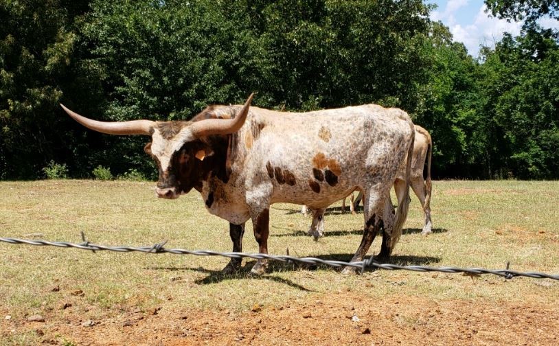 Out of the longest horned bull alive Cowboy Tuff Chex with a proven dam from the great Field of Pearls. If you want genetics, color and horn here it is. His 2019 calves should be hitting the ground soon.